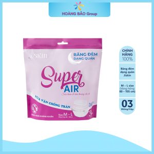 Băng vệ sinh Jiskin Super Air là dòng sản phẩm chăm sóc sức khỏe phụ nữ được nhập khẩu chính hãng từ Hàn Quốc. Sản phẩm băng vệ sinh đầu tiên được ứng dụng công nghệ “Super Air” mang lại cảm giác mềm mại, khô thoáng đến bất ngờ giúp mang lại sự thoải mái, tự tin tuyệt đối cho chị em phụ nữ trong suốt kỳ kinh nguyệt