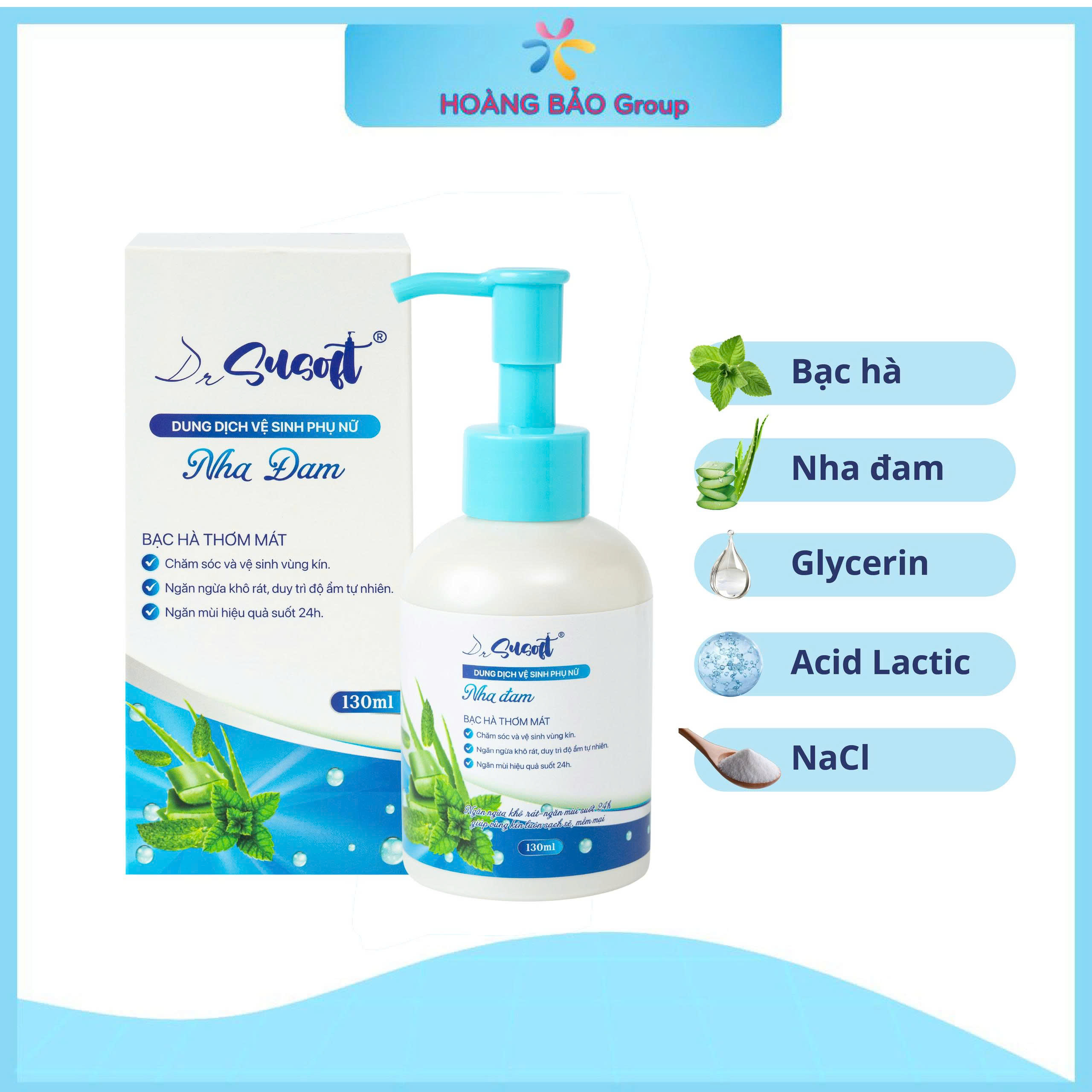 Dung dịch vệ sinh phụ nữ Nha Đam – Bạc Hà DrSusoft là sản phẩm chuyên dùng để chăm sóc và vệ sinh vùng kín đạt chứng nhận chất lượng CGMP ASEAN. Với công thức độc quyền, dung dịch vệ sinh nha đam bạc hà DrSusoft không chỉ giúp làm sạch, ngăn mùi suốt 24h mà còn hỗ trợ dưỡng ẩm và cân bằng độ pH, cho vùng kín luôn sáng sạch, mịn màng cho chị em luôn tự tin, thoải mái.